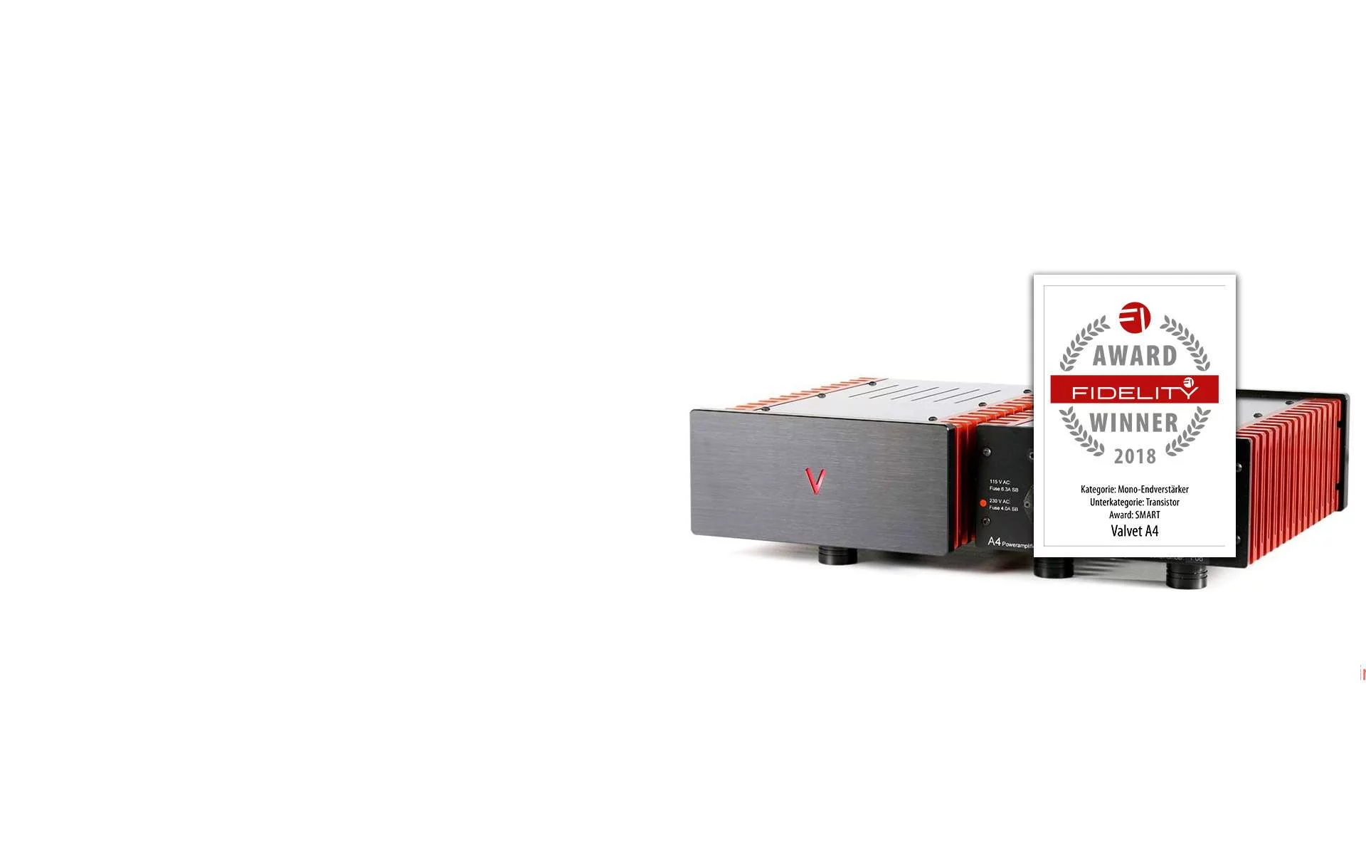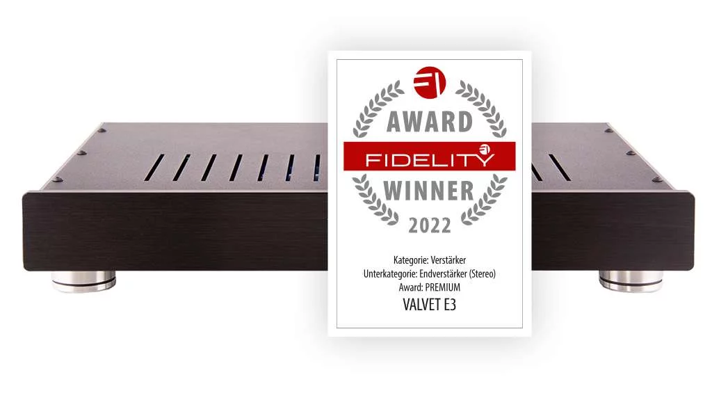 E4 und A4.5Jetzt Lesen Testbericht VALVET Vorstufe soulshine2 und Endstufe A4im Magazin „IMAGE HIFI“ Ausgabe 04/22Unsere E3 hat den „FIDELITY AWARD 2022“ verliehenen bekommen."Schlichte Technik im schlichten