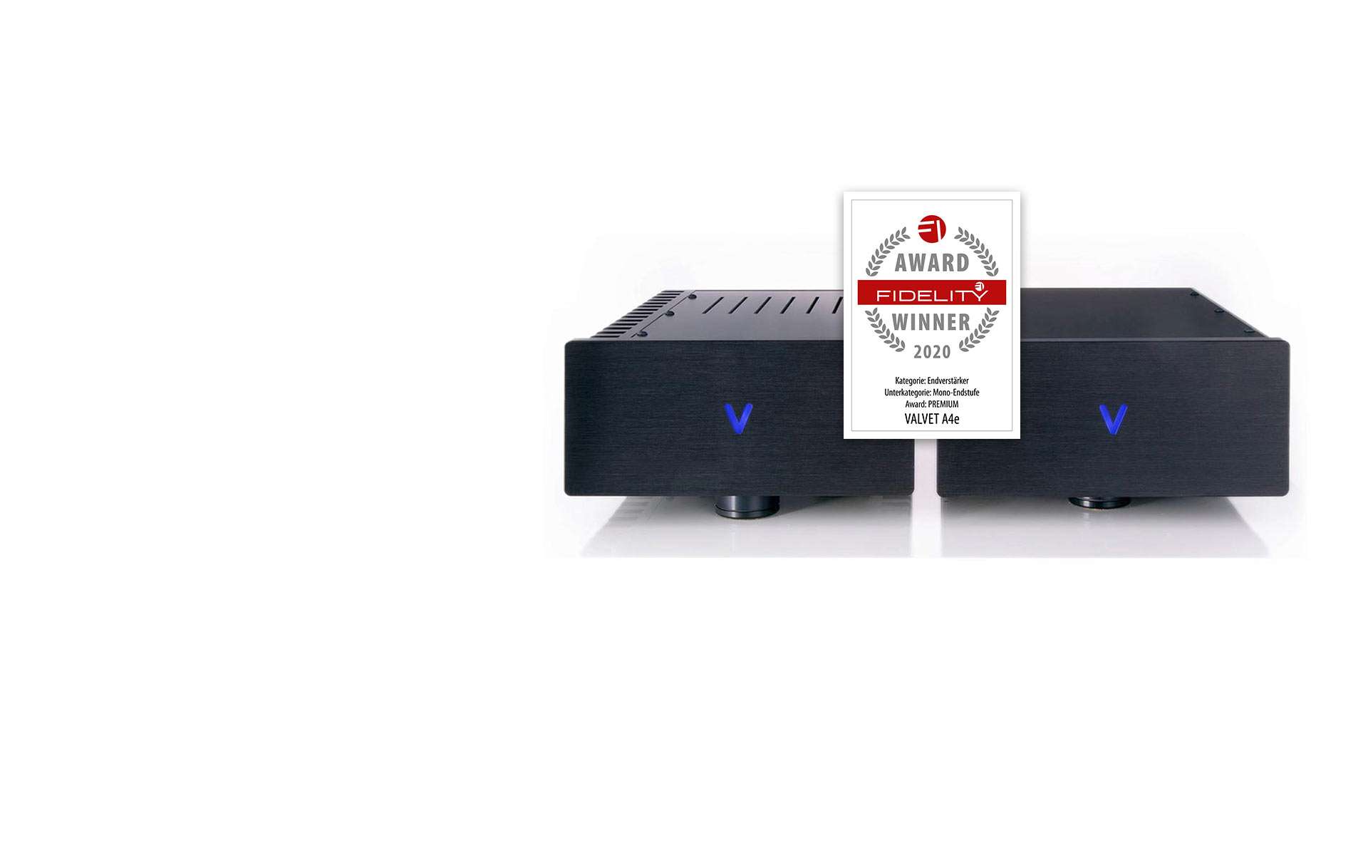 E4 and A4.5Read more Highlight: Top Review for our E3in the issue 06/21 of FidelityErfahren Sie mehr Fidelity Award 2020 for our A4 monoblocksin the category power amplifierTo the reviews Praised in high notesfrom renomated magazinesRead more High-End amplifiersfrom Valvet